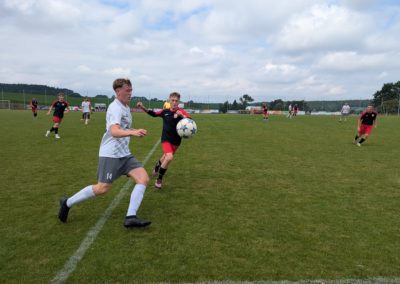 Nachdem unsere Mannschaft etwa 15 Minuten gebraucht hatte, um ihre Sicherheit zu finden, zeigten alle Mannschaftsteile eine sehr gute Leistung, wodurch kein Klassenunterschied zu sehen war. Nächste Woche gibt es noch ein weiteres Testspiel, ehe es dann in zwei Wochen in der Kreisliga losgeht.