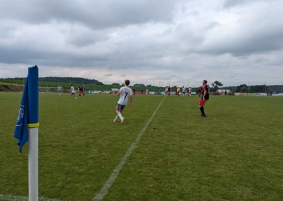 Das erste Tor nach der Pause erzielten die Gäste. Sie nutzten einen Fehlpass unserer SG im Mittelfeld, spielten schnell nach vorne und schließlich schloss Philip Berthold zum 3:2-Anschlusstreffer ab (56′). In der letzten halben Stunde war von der Weidaer Offensive nicht mehr so viel zu sehen wie in den ersten 60 Minuten. Während sie nur noch vereinzelt vor das gegnerische Tor kamen, legten die Langenwetzendorfer noch einige Tore nach. Das 4:2 erzielte der eingewechselte Paul Gerwatowski in der 59. Minute per Volleyschuss mit der Innenseite auf Höhe des Sechzehners. Fünf Minuten später machte Lorenz nach einem langen Ball aus der eigenen Hälfte durch die Mitte sein zweites Tor des Spiels zum 5:2. Das letzte Tor des Tages fiel in der 76. Minute nach einer schön ausgeführten Freistoßvariante: Paul schickte mit einem kurzen Pass Vincent über die linke Seite, der an der Mauer vorbeiging und den Ball flach nach innen spielte. Dort verwandelte Maximilian mit seinem zweiten Treffer zum 6:2-Endstand.